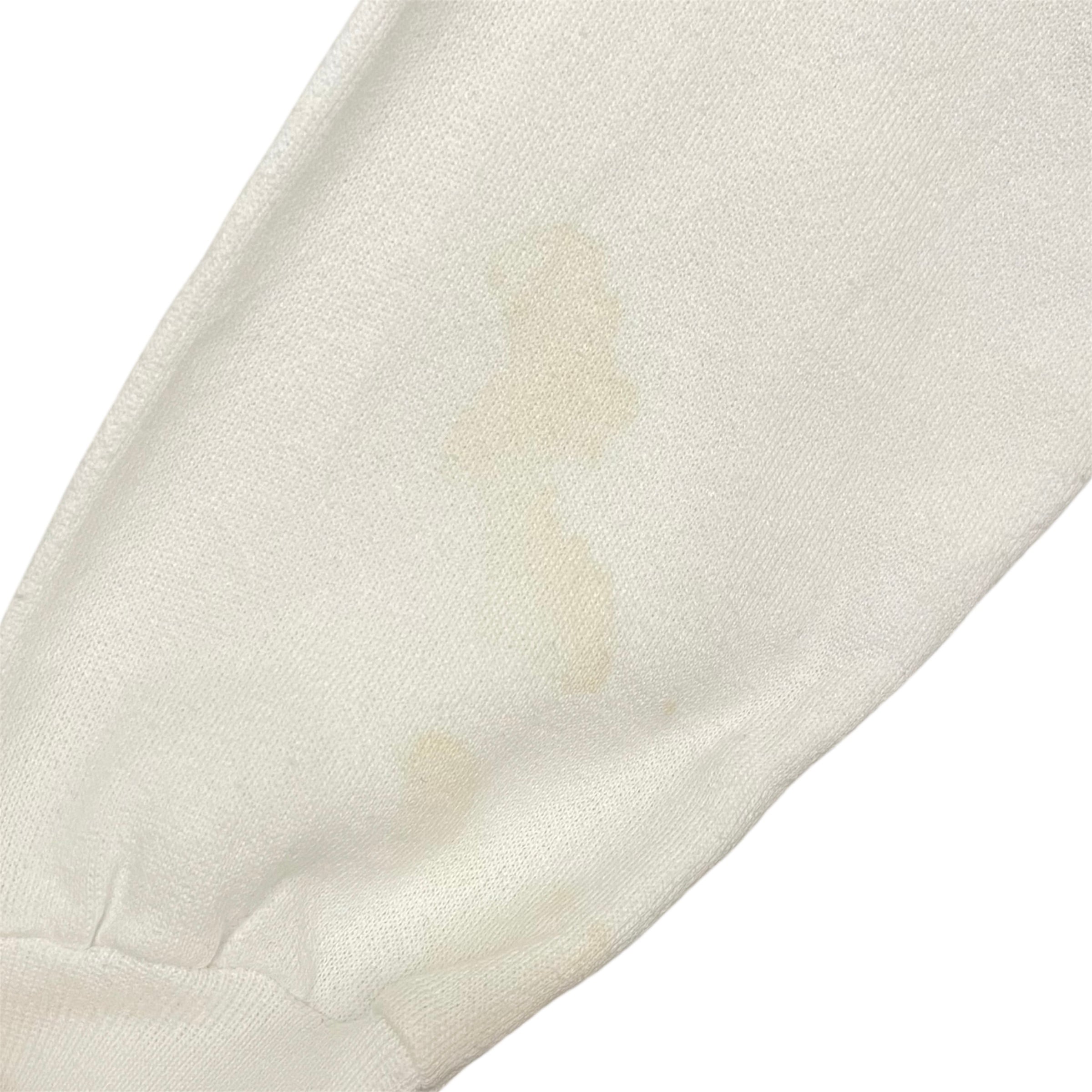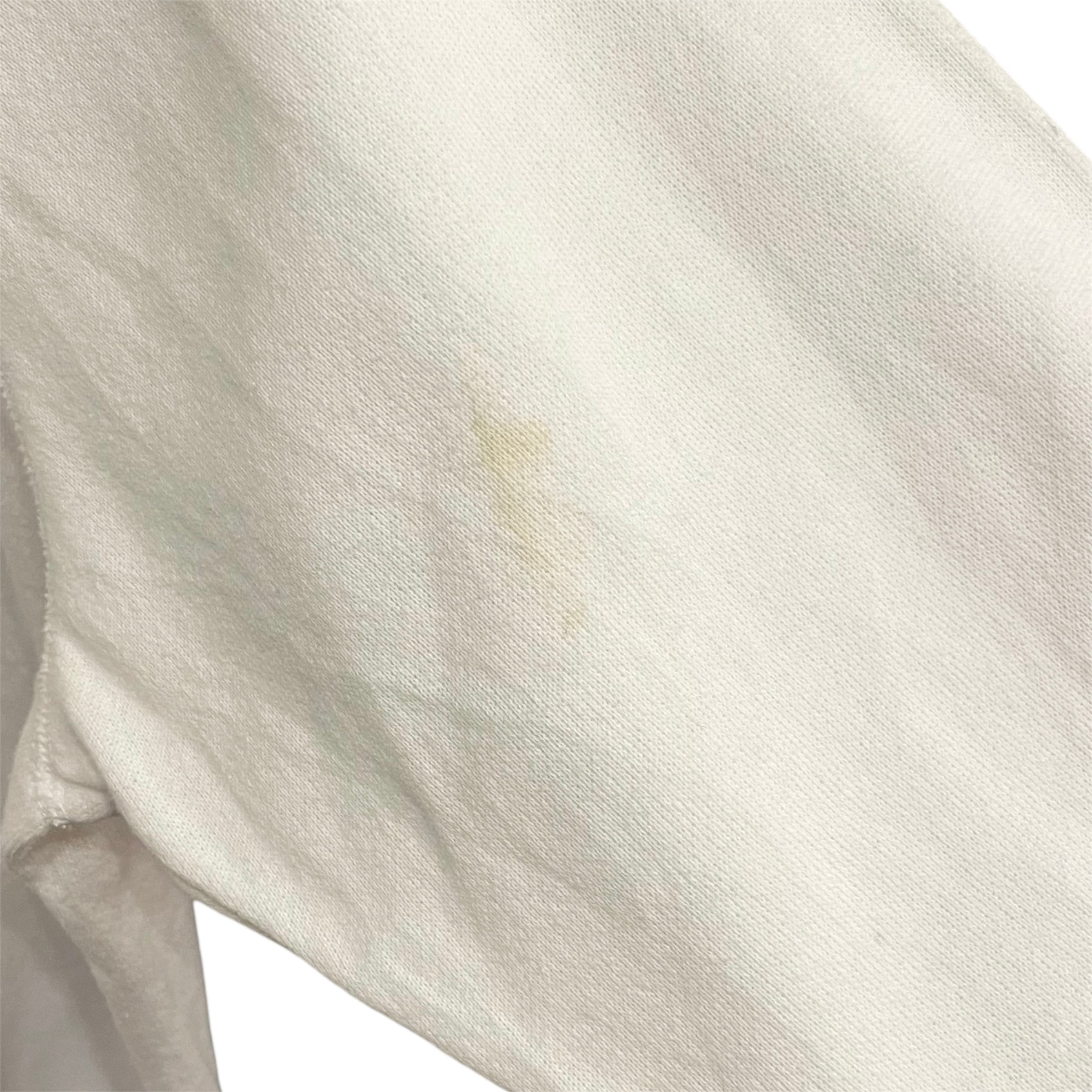 経年の使用による若干の使用感があります。袖部分やフロント胸元付近に汚れと微小のダメージが見られます(掲載画像7枚目〜10枚目参照)が、生地はまだ残っており今後も長くご利用いただけます。(いずれも掲載画像参照)