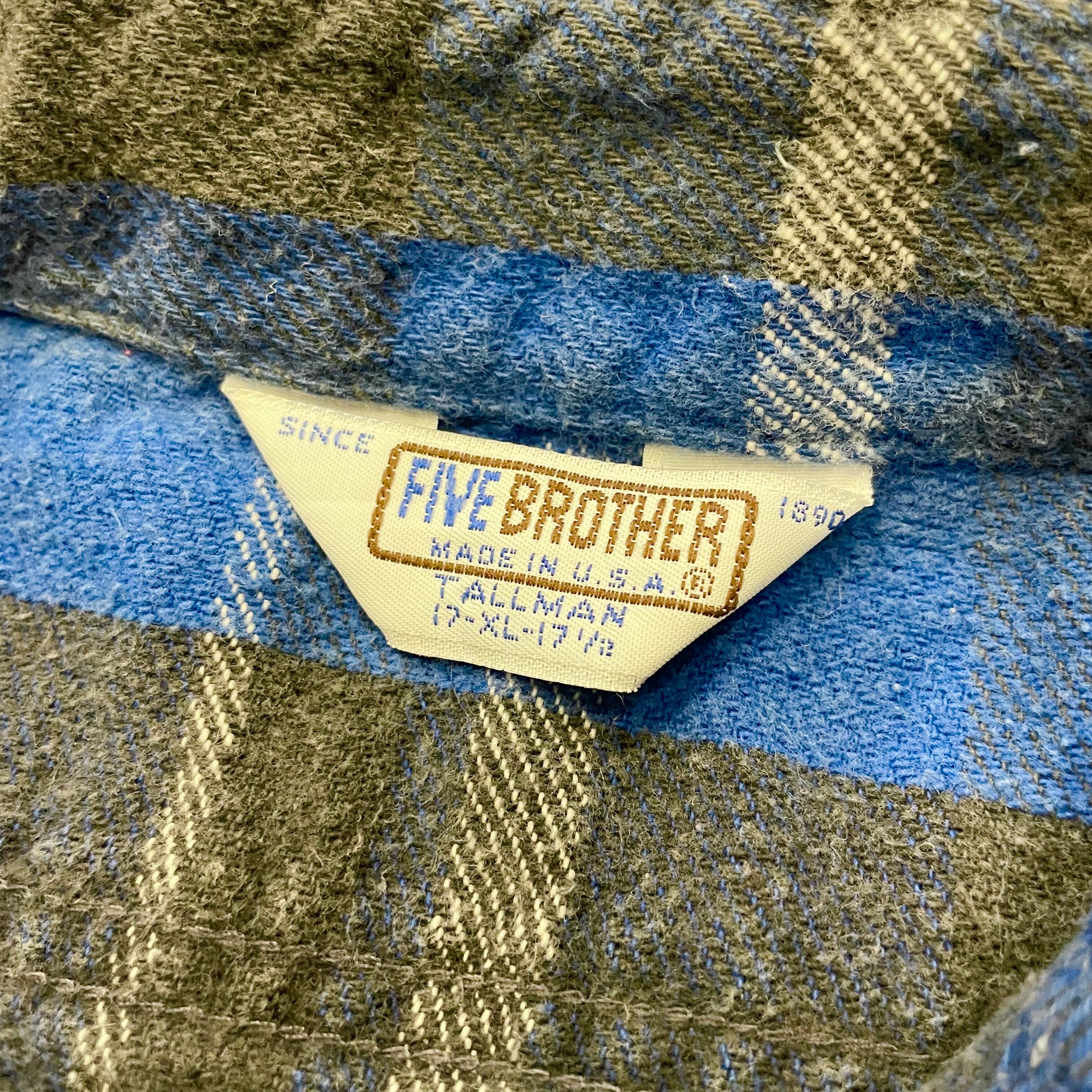 Made in USA‼︎ 1980s FIVE BROTHER old heavy-flannel check shirt (size XL-TALL)