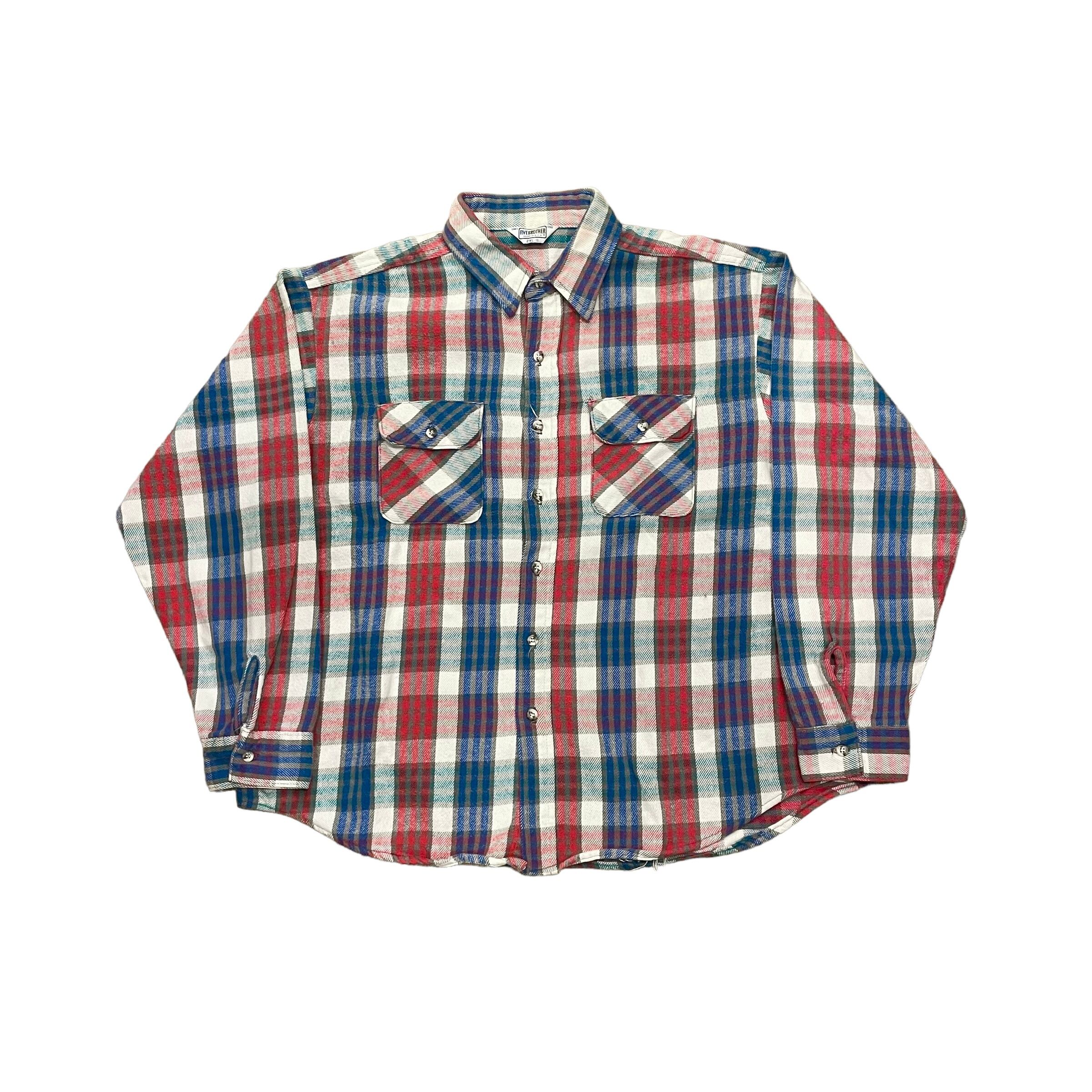 Made in USA!! 1980s FIVE BROTHER heavy flannel check shirt (size 2XL)